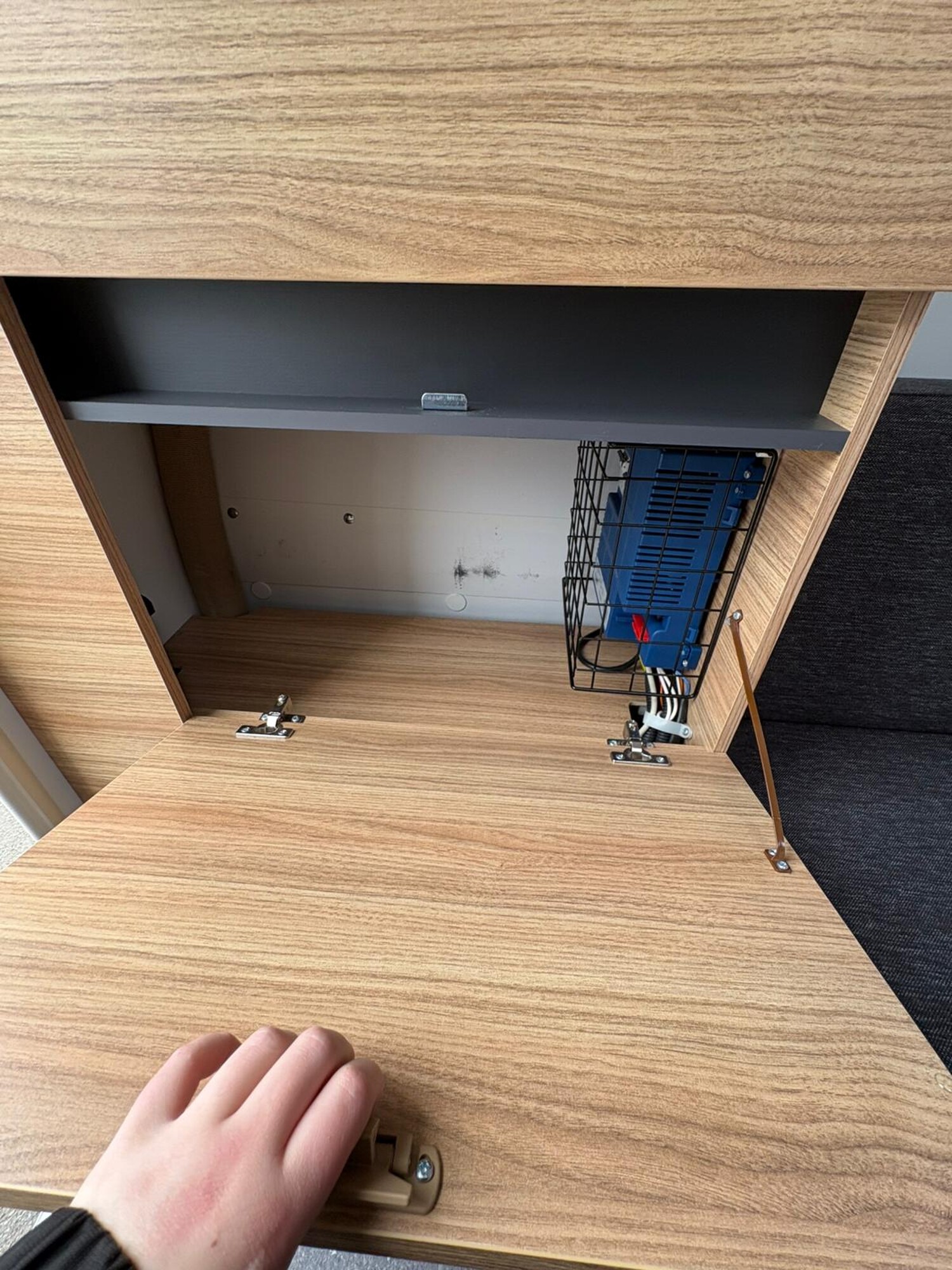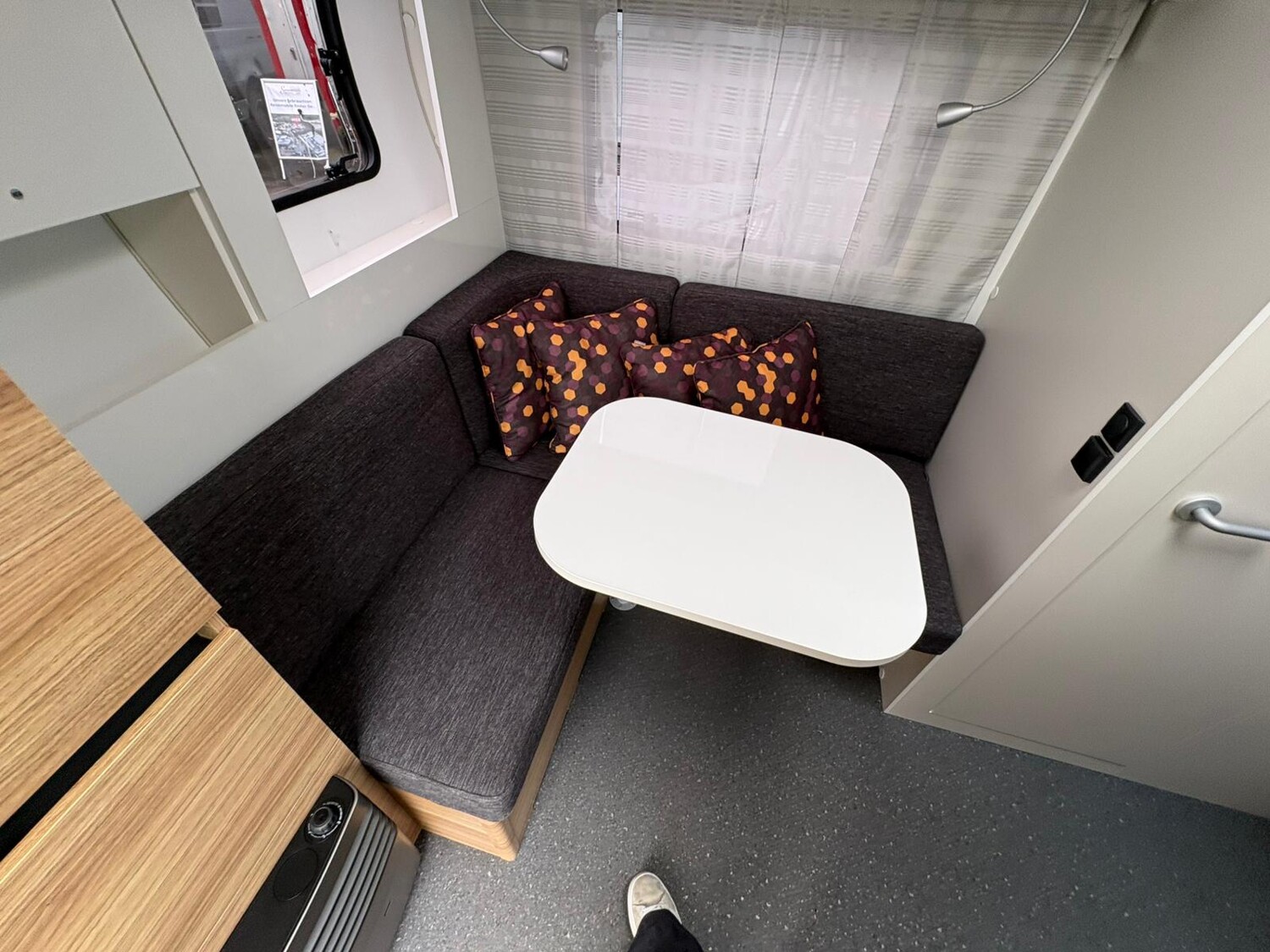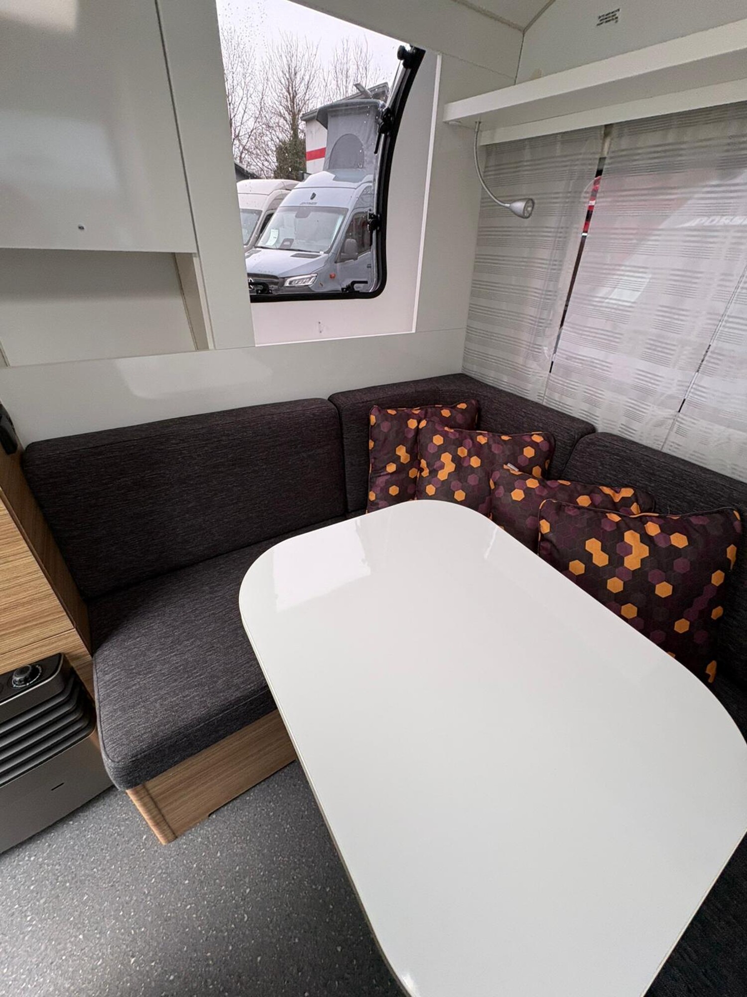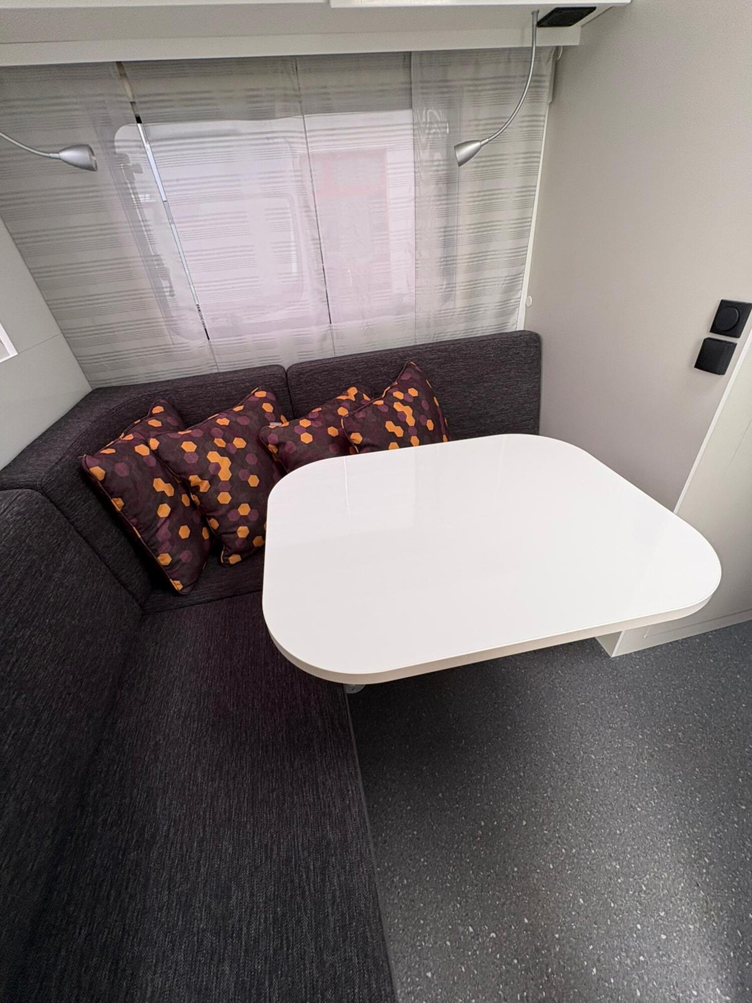 - L-Sitzgruppe mit schwenkbarem Tisch und Stauschränken