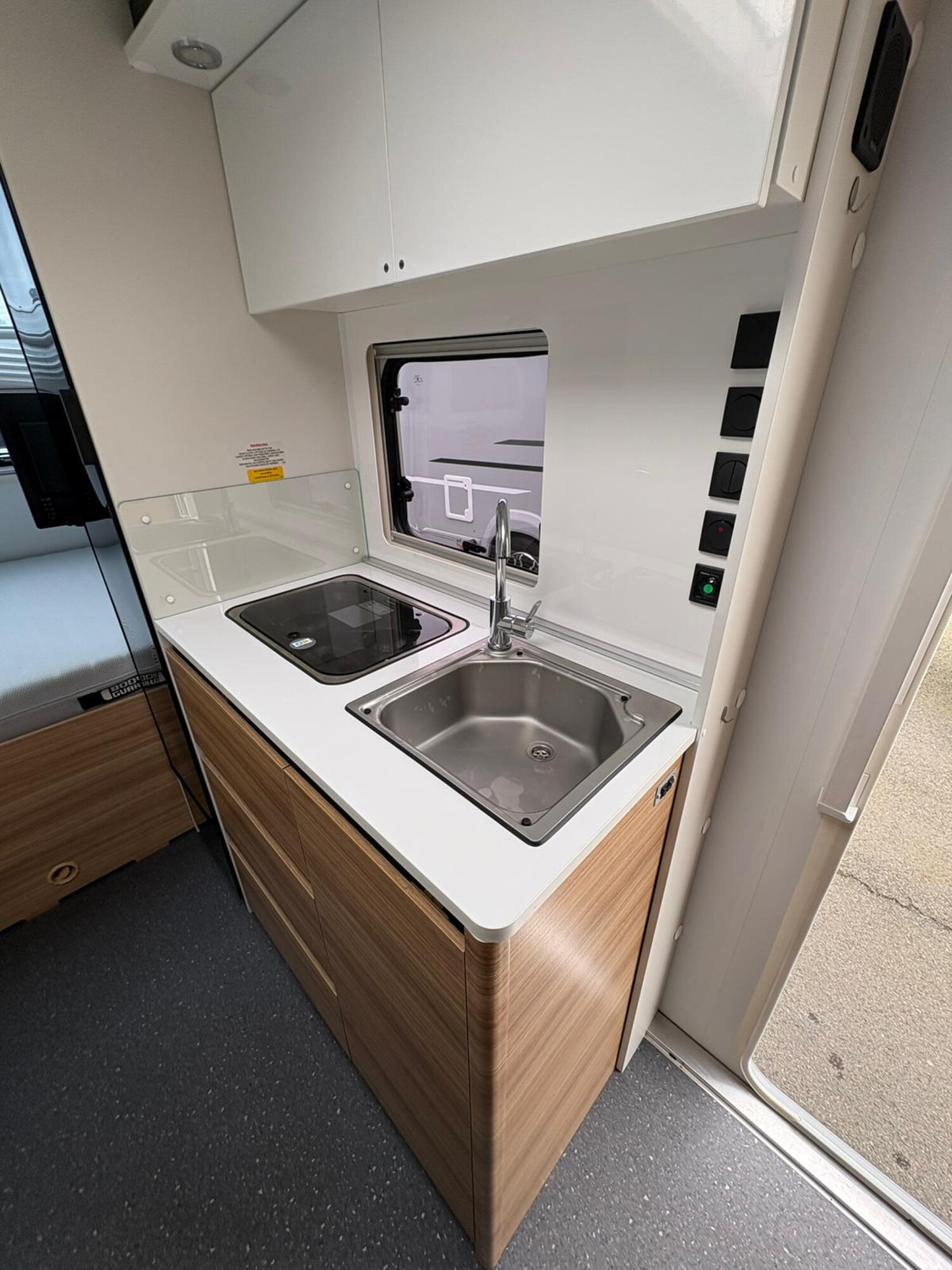 - Küchenzeile mit 2-Flammkocher inkl. Glasabdeckung, Spüle, Stauschränke, Schubladen