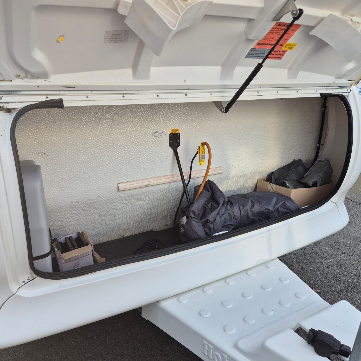 - 2-teilige Eingangstür mit einem integriertem Mülleimer, einem Staufach und einem Fenster inkl. Verdunkelung