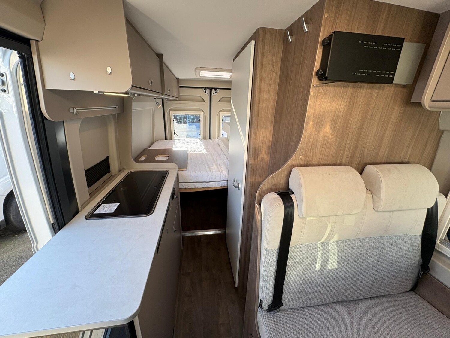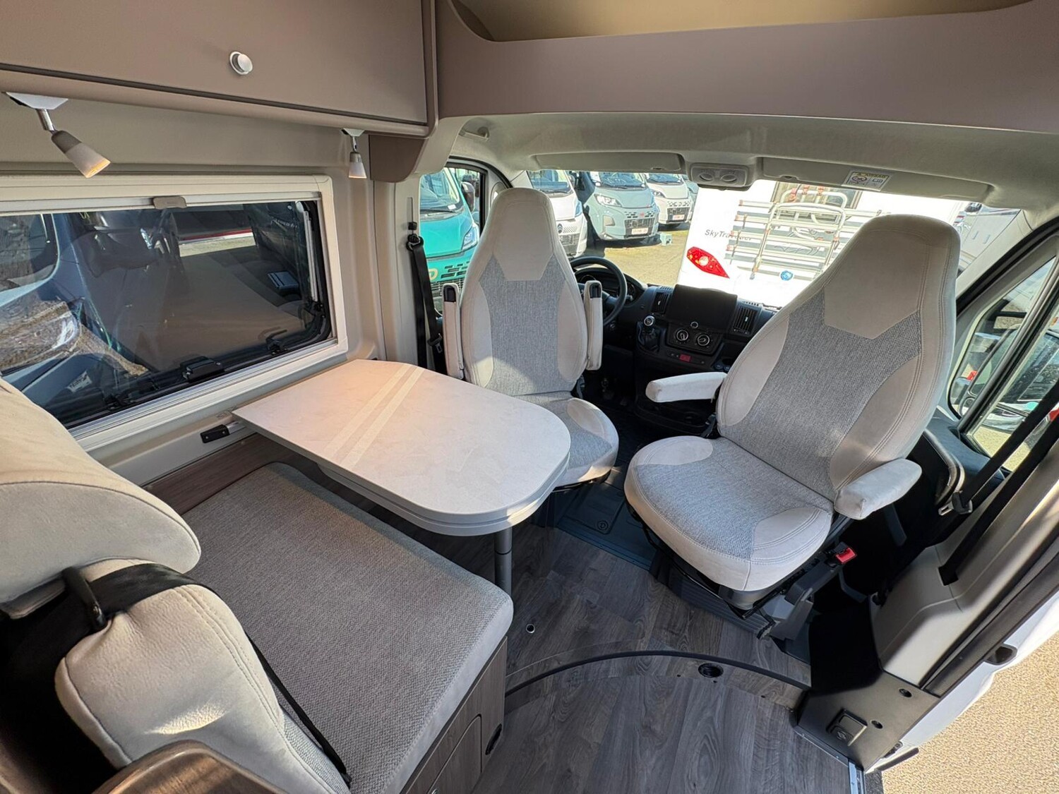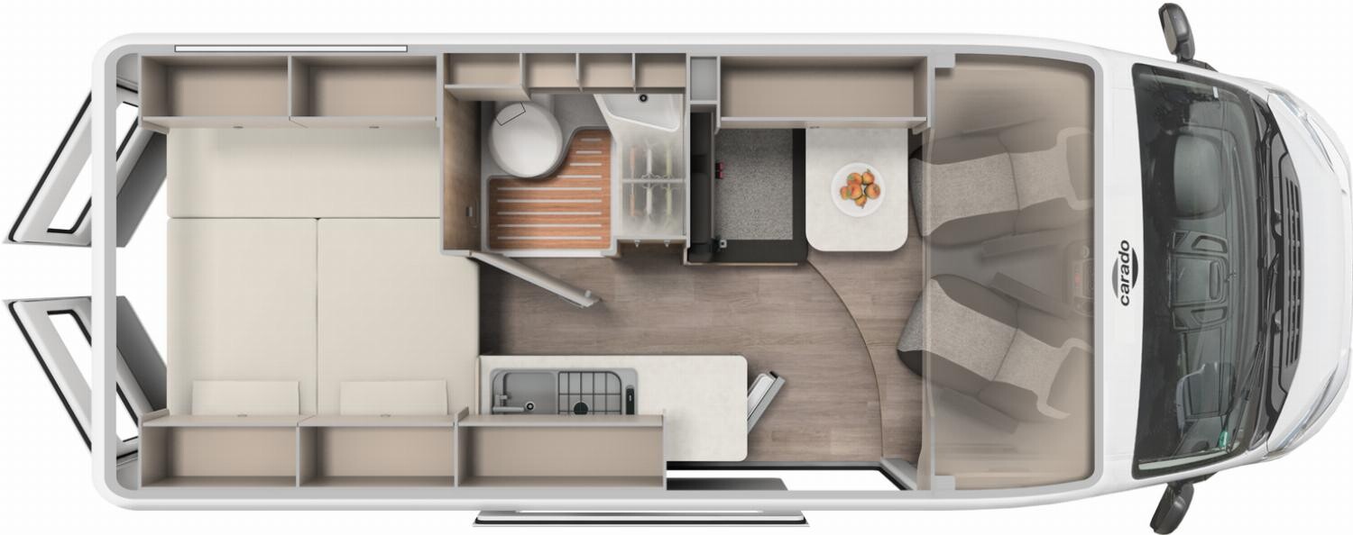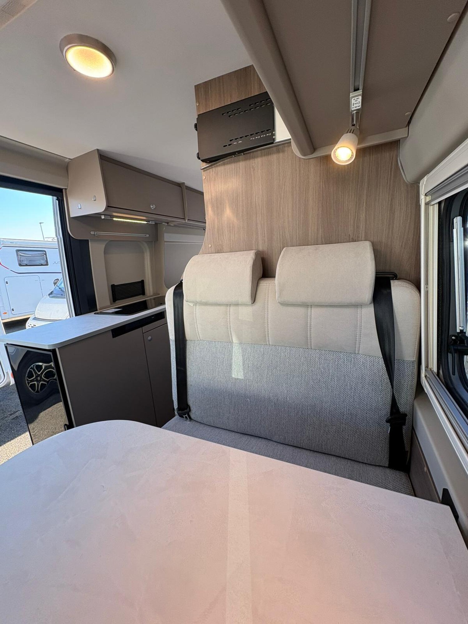 - Doppelbett im Heck mit Staufläche darunter, Leselampen, umliegenden Stauschränken