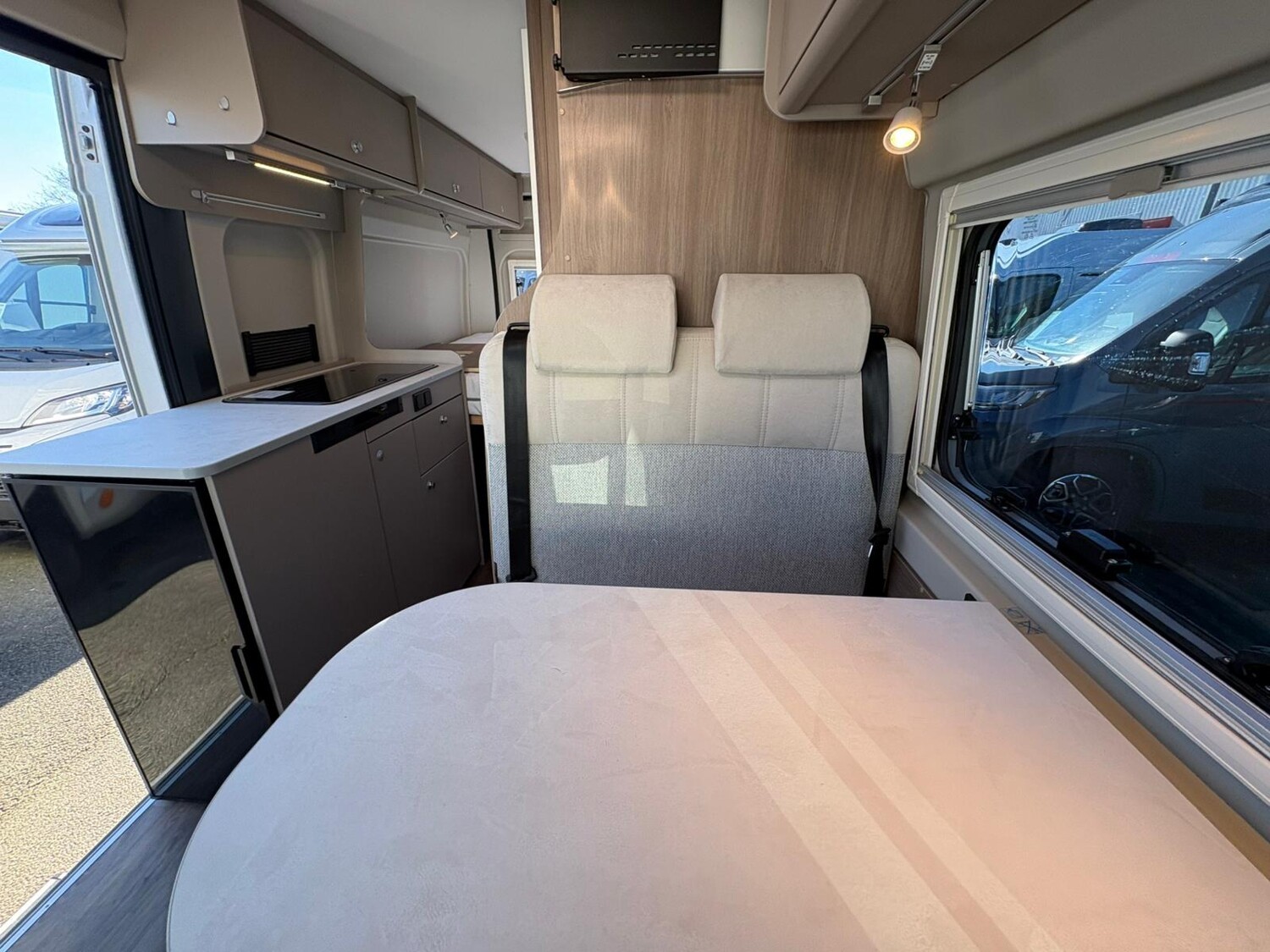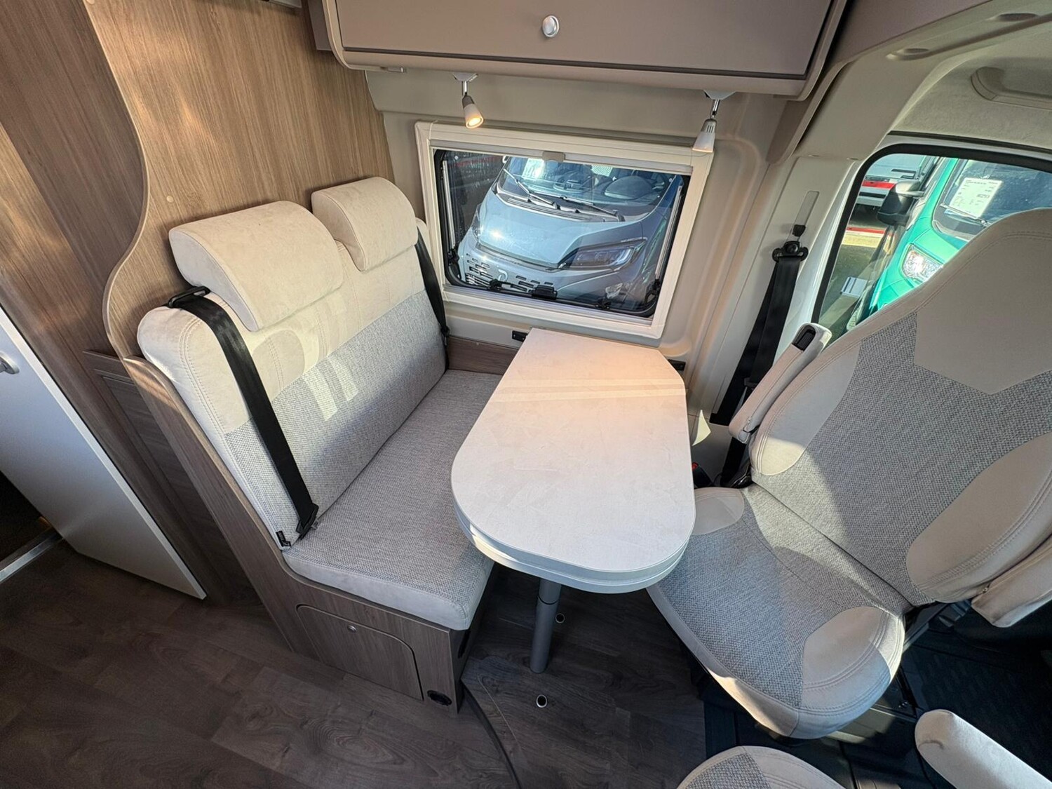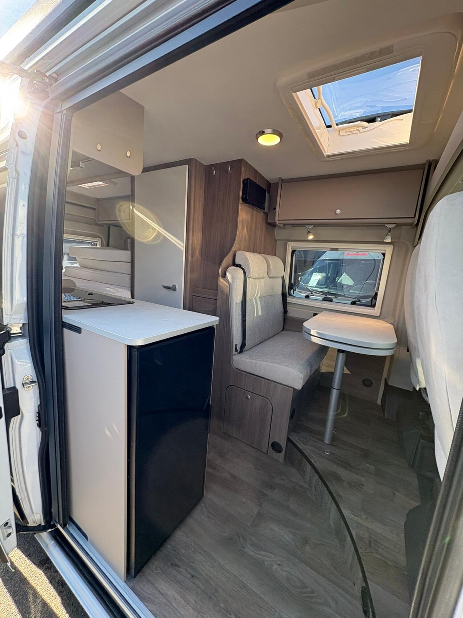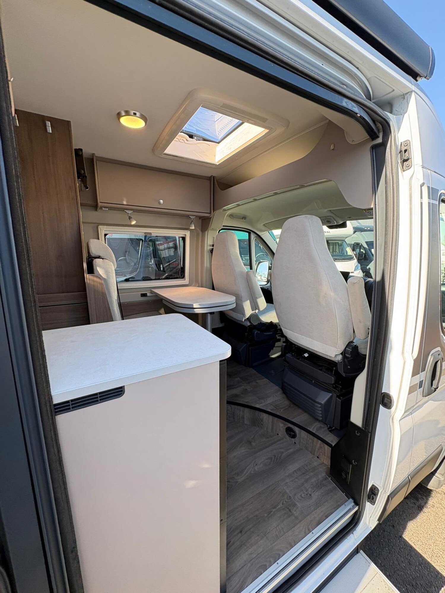 - Doppelbett im Heck mit Staufläche darunter, Leselampen, umliegenden Stauschränken