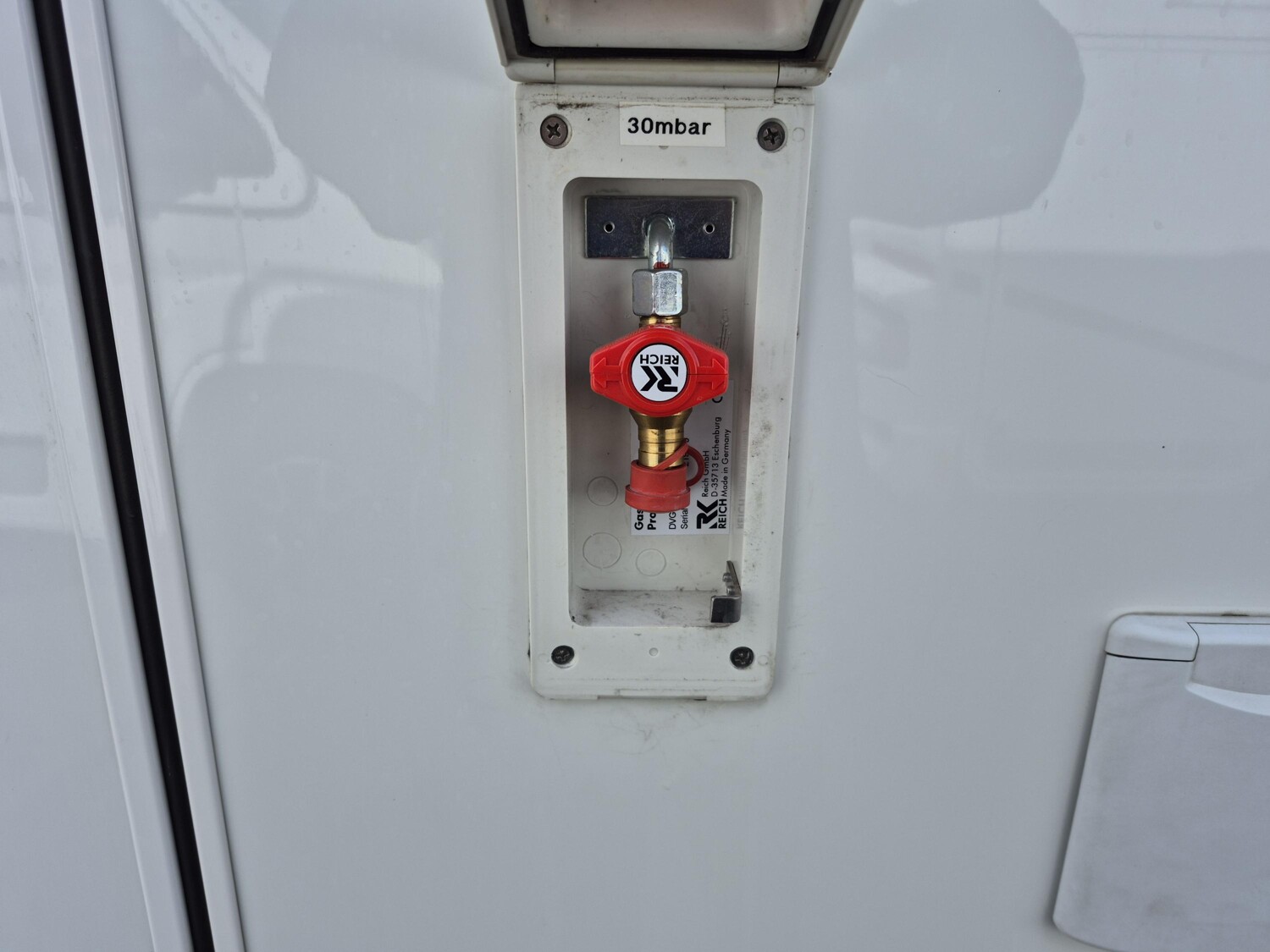 - Gassteckdose außen mit Absperrhahn