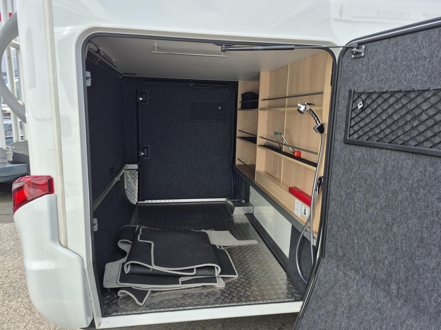 - Riffelblechboden und Filzverkleidung in Heckgarage