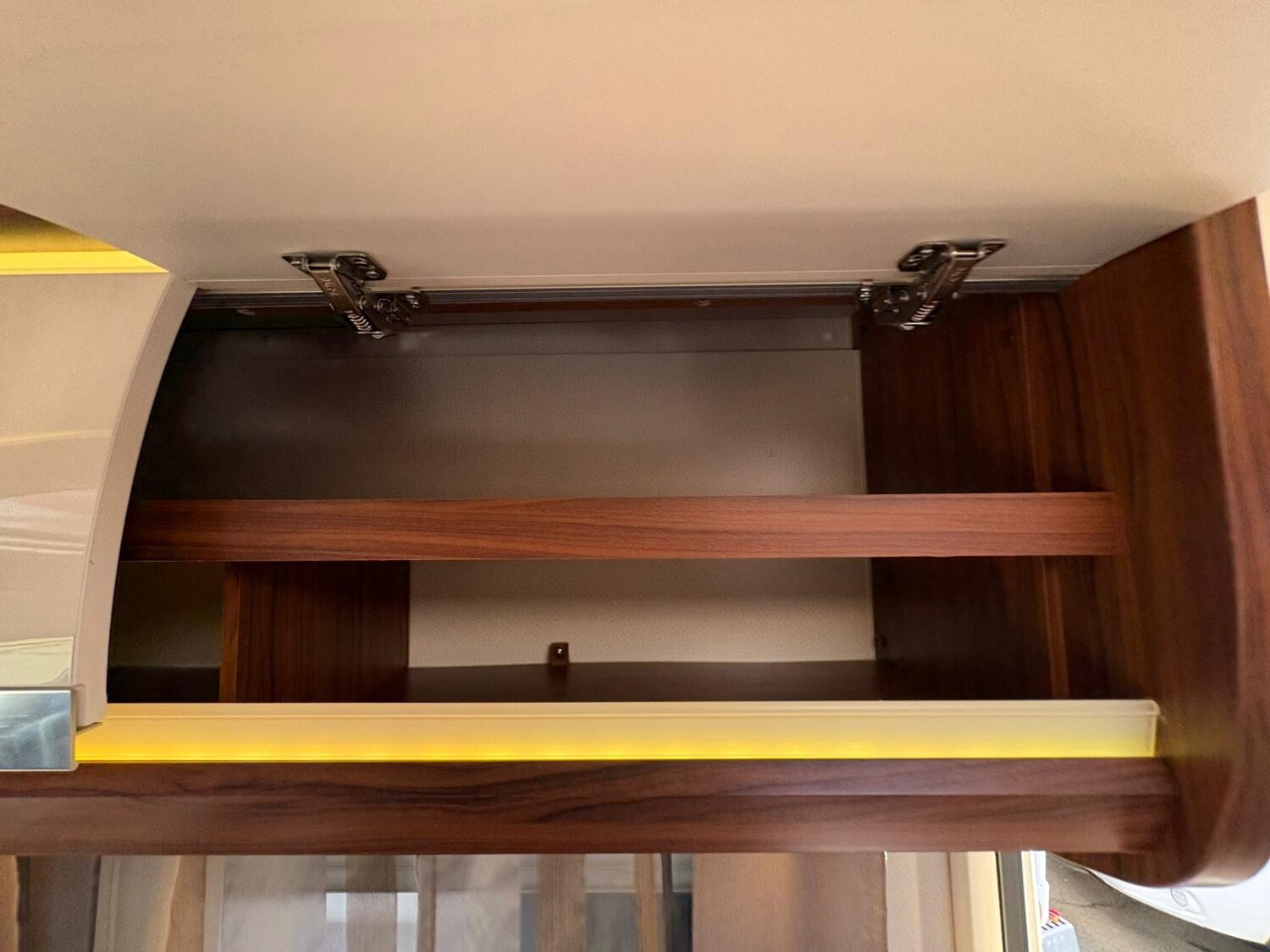 - Küchenzeile mit 3-Flammkocher inkl. Glasabdeckung, Spüle, Schubladen, Stauschränke, Apothekerauszug, Kühlschrank mit integriertem Eisfach