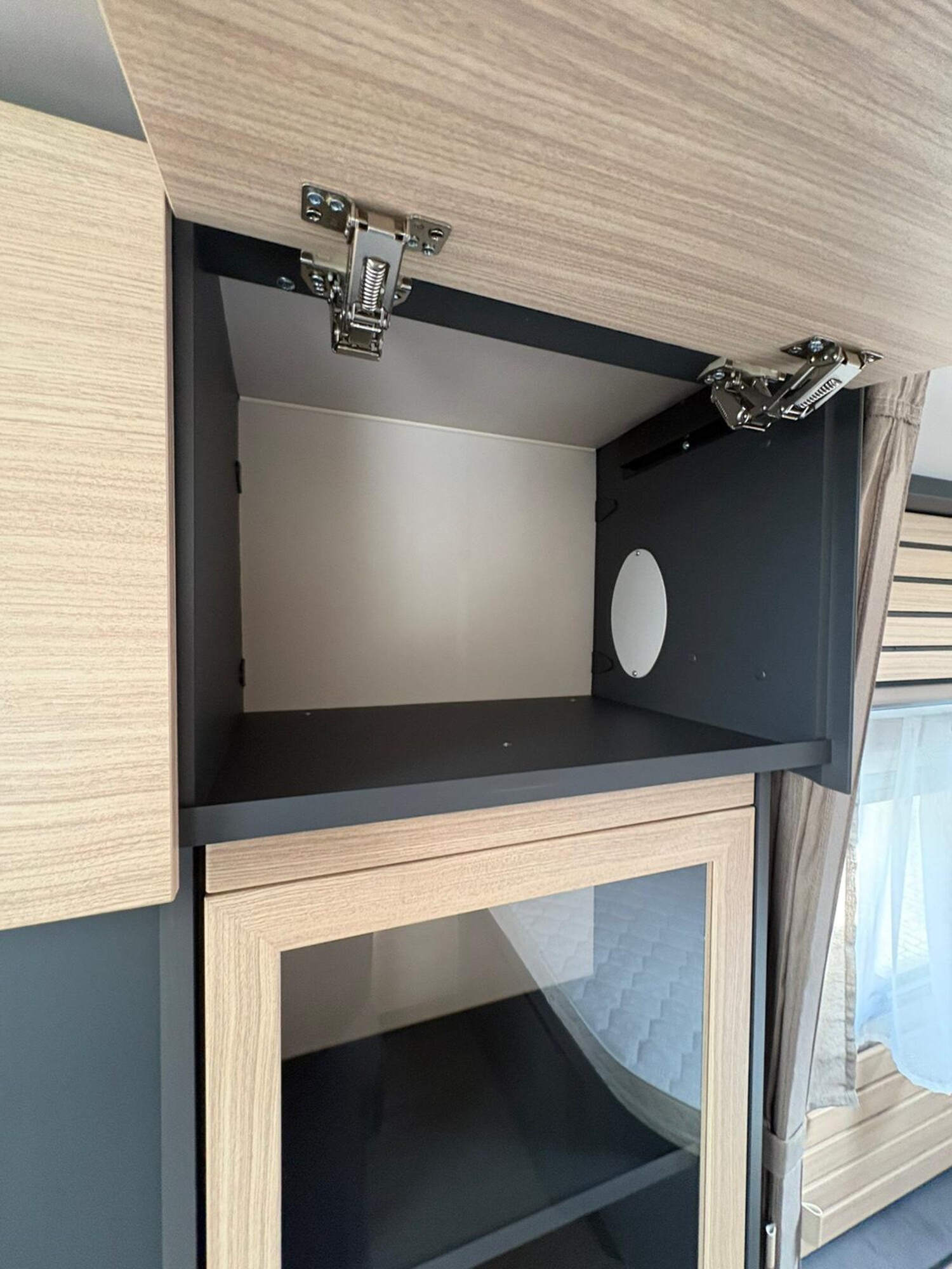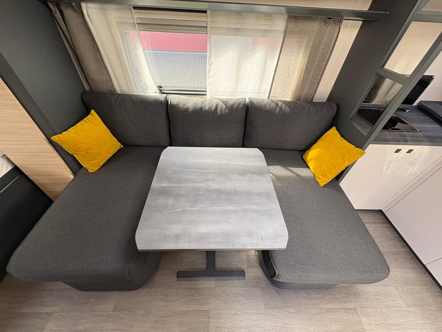 - Mittelrundsitzgruppe, umbaubar zu einer weiteren Schlafmöglichkeit, mit Stauschränken und einer Vitrine
