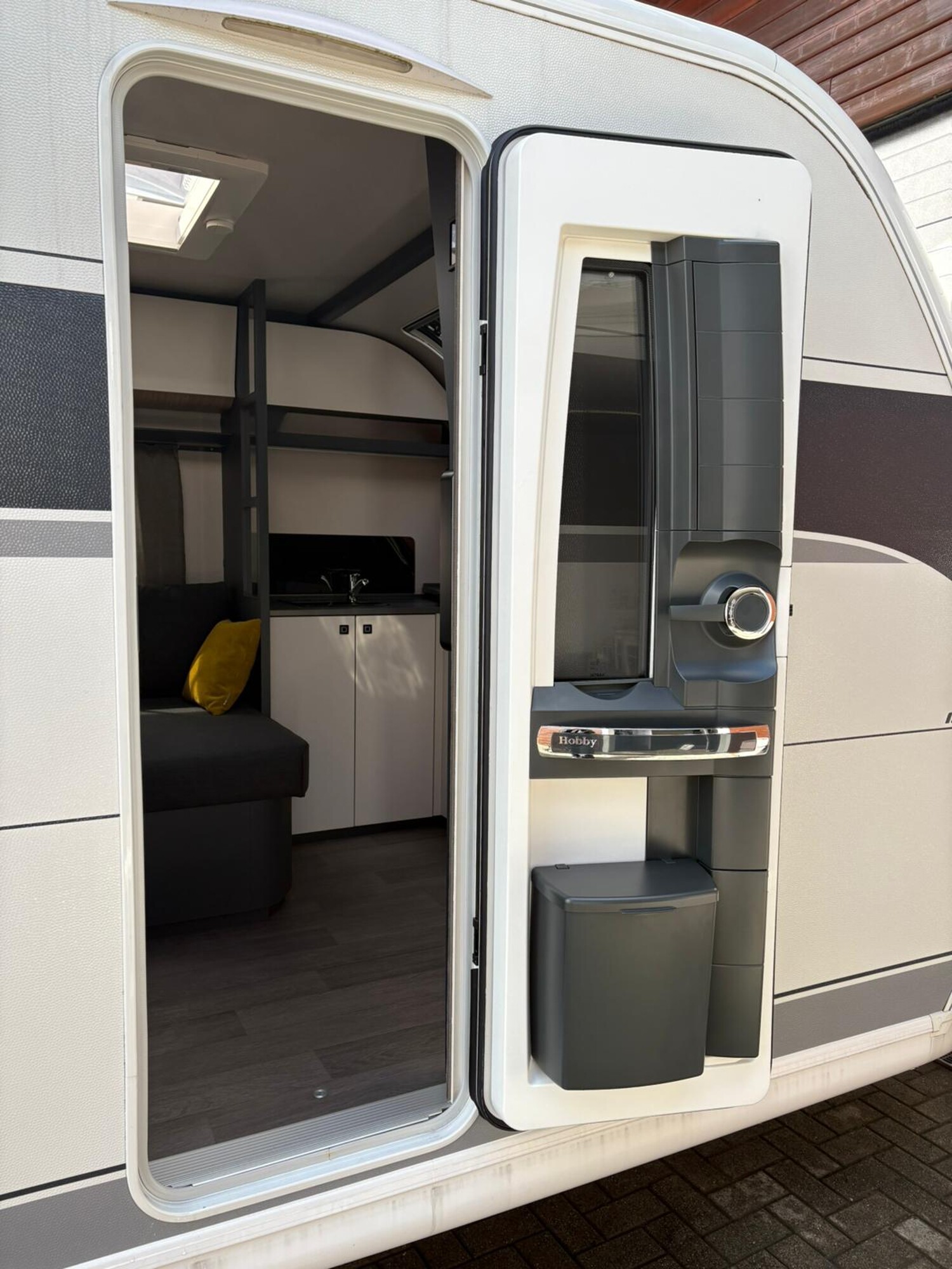- Heckbad mit separater Dusche, Cassettentoilette drehbar, Spiegel, Stauschrank, Fenster in Milchglasoptik
