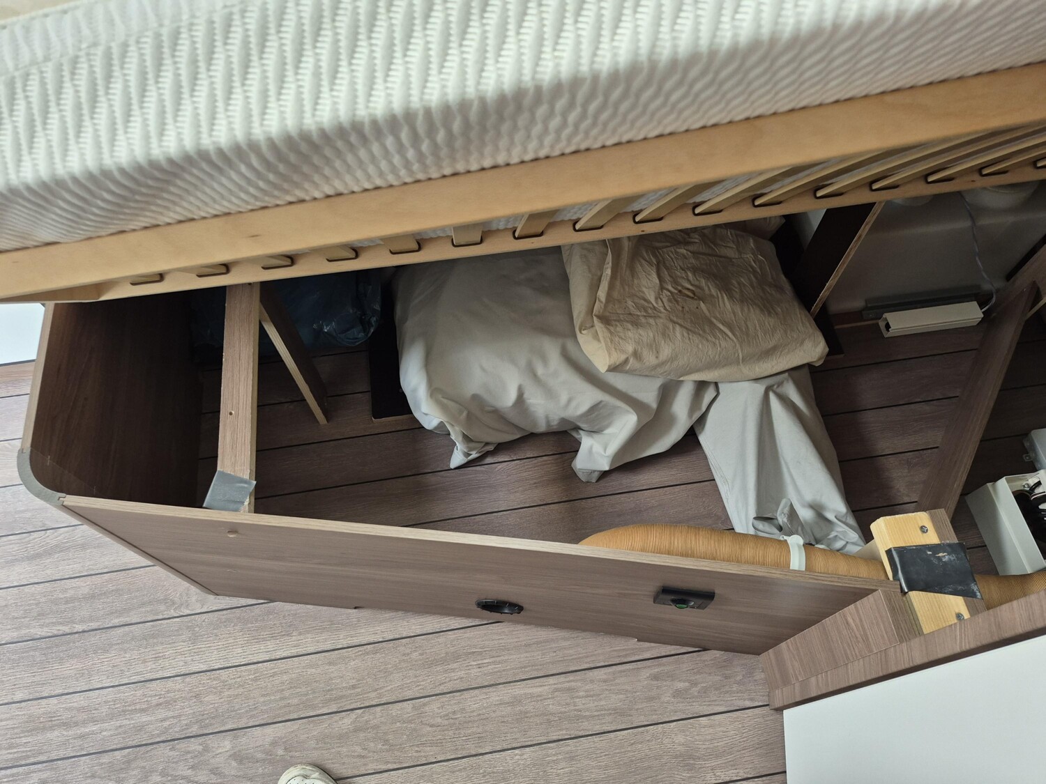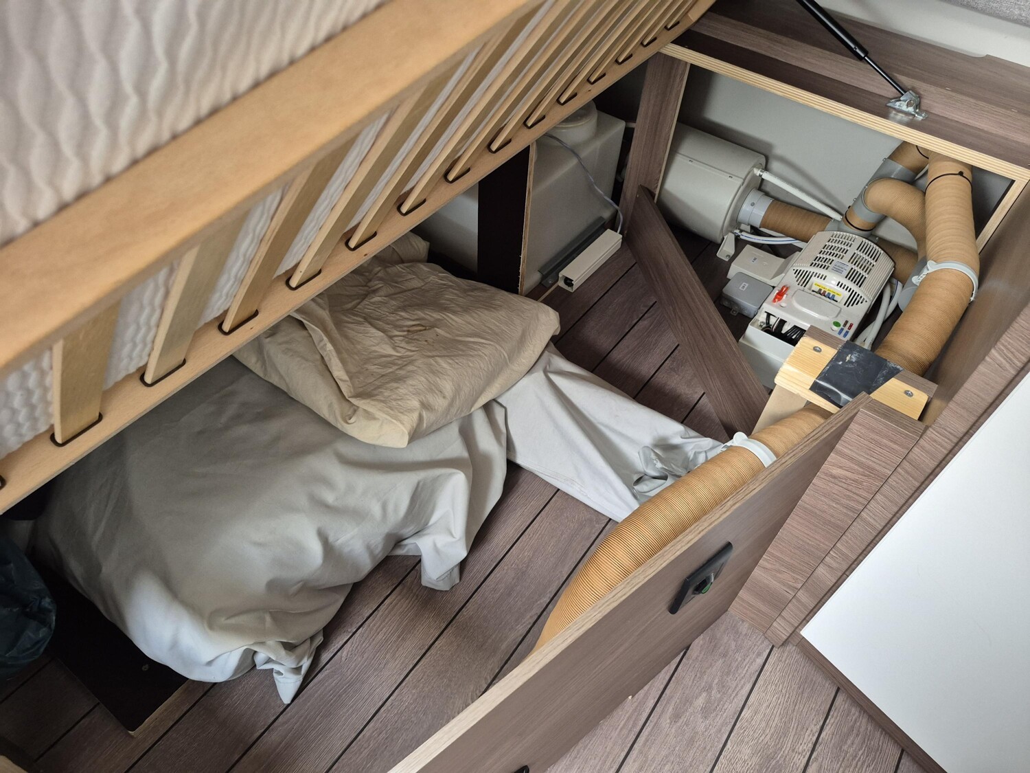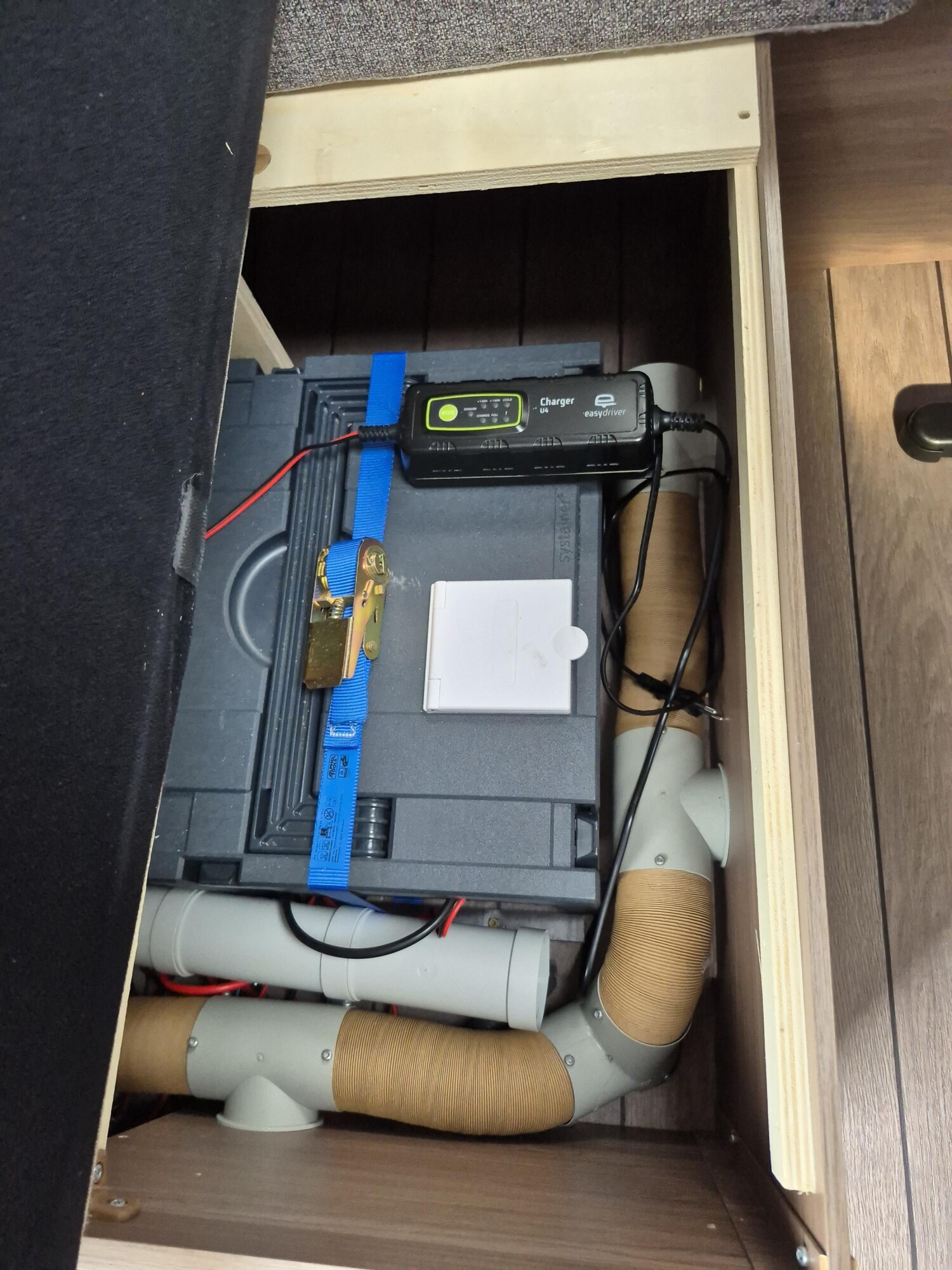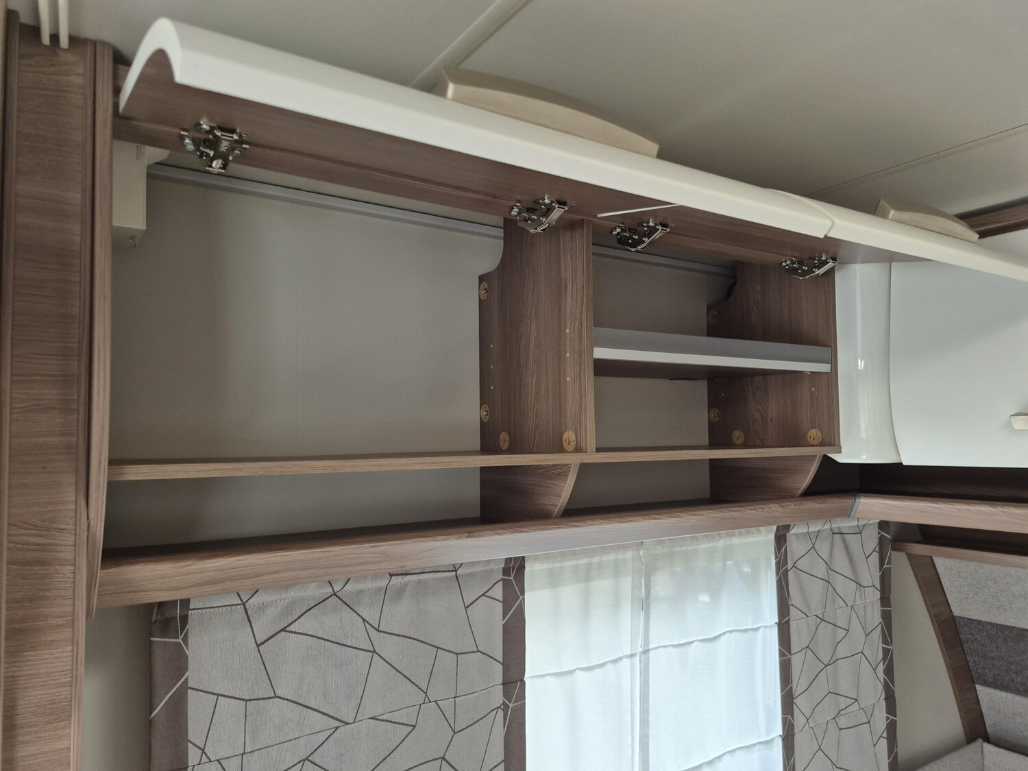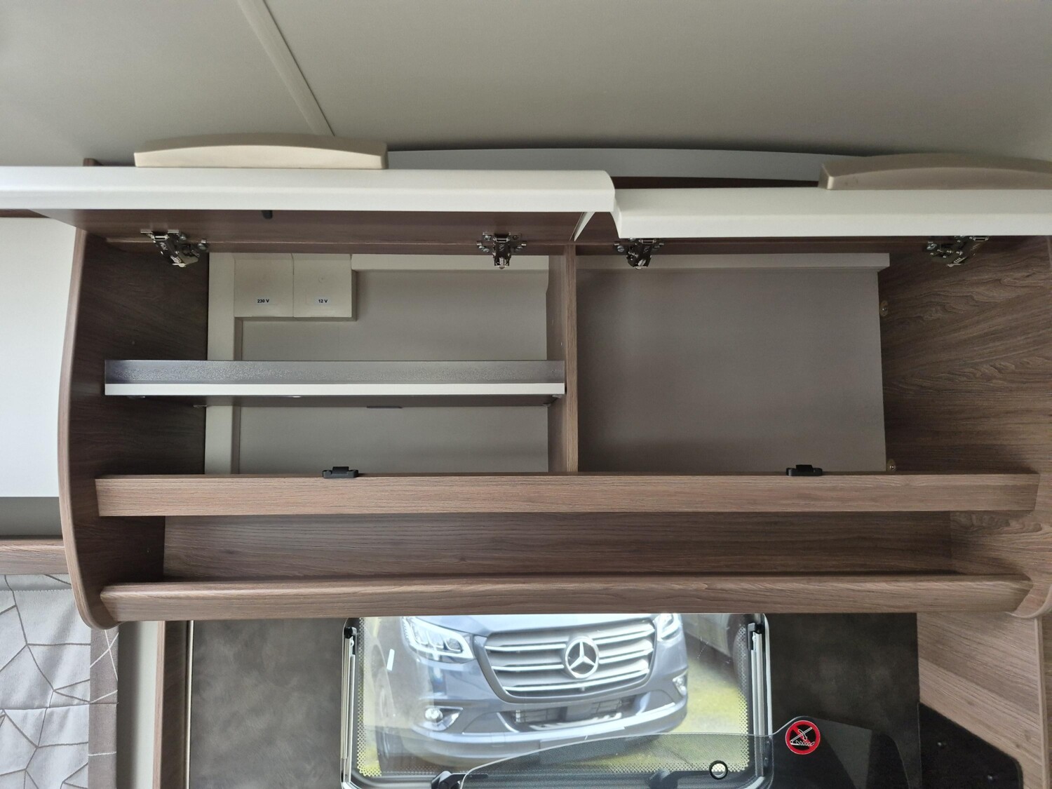 - Nasszelle mit einer Dometic Toilette, Seitenfenster und Staufächern