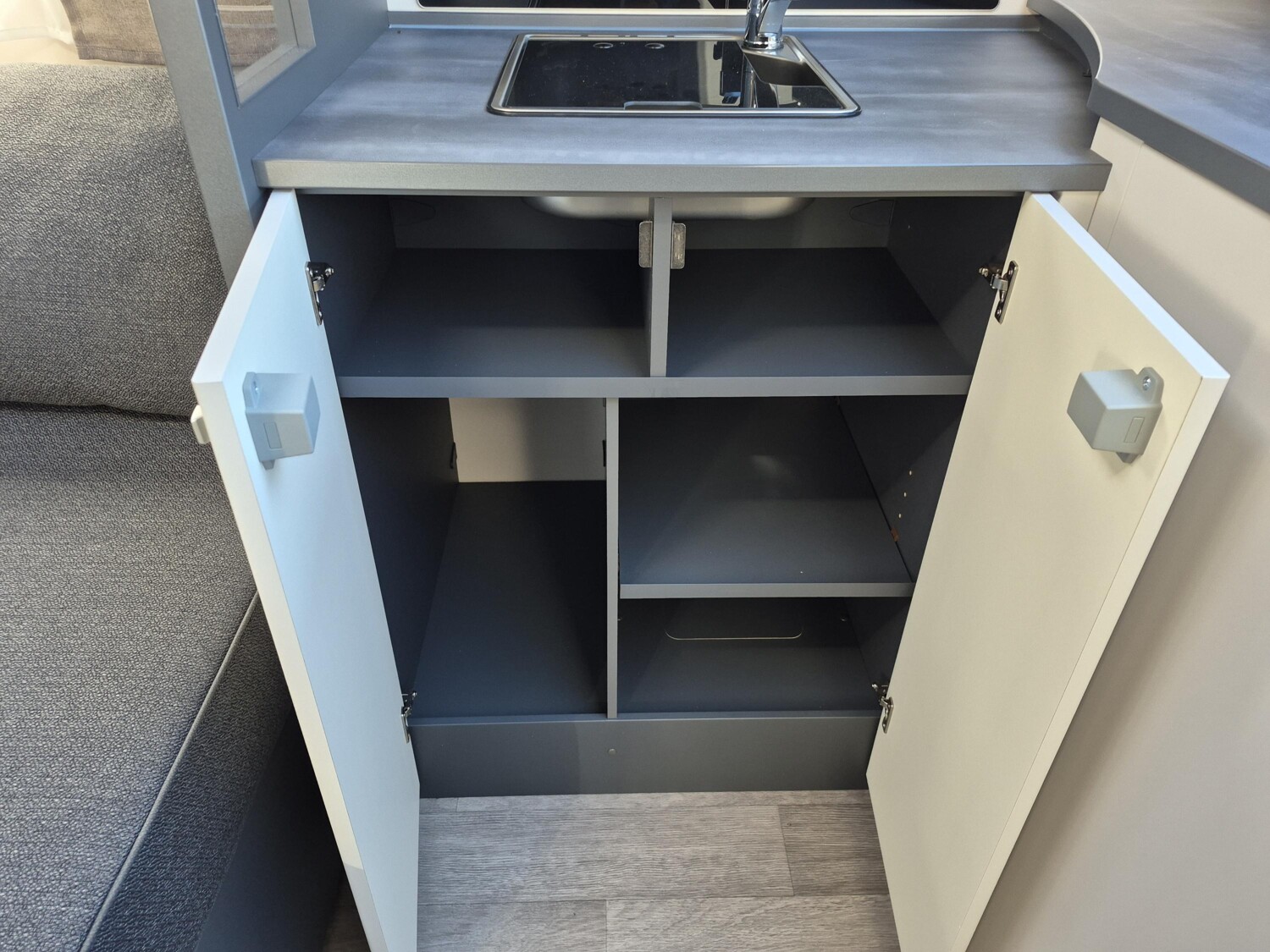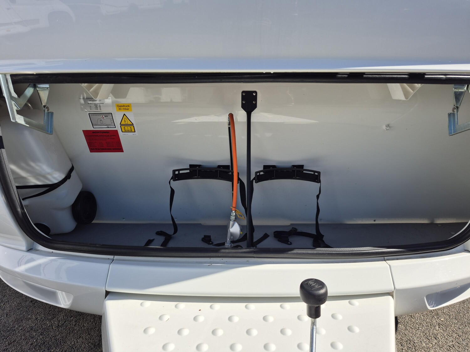 - Bugklappe mit Platz für 2 Gasflaschen und einem Mobilen Abwassertank