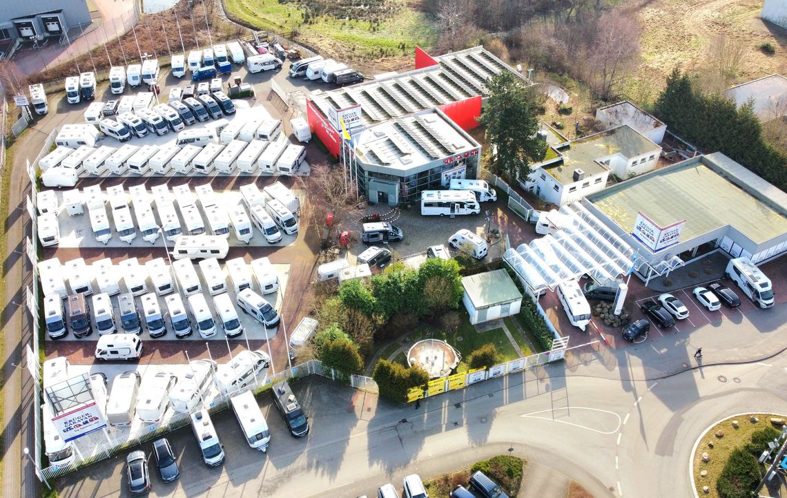 Auf den rund 5000 Quadratmeter Betriebsgelände finden bis zu 100 Fahrzeuge etablierter Marken ihren Platz. Vom Entry bis Luxus Segment, von Wohnwagen über Kastenwagen bis zu den vollintegrierten Reisemobilen finden die Fahrzeuge der Marken Hymer, Eriba, Dethleffs, Carado, Pössl, Fendt und Hobby hier ihren Anklang.
